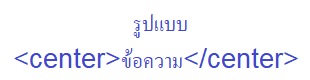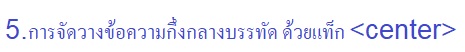 นอกจากคำสั่ง p align = “ตำแหน่ง” แล้วสามารถกำหนด การจัดวางตำแหน่งเฉพาะส่วนที่อยู่ตรงกึ่งกลางบรรทัดได้เร็วและสะดวกกว่า โดยใช้คำสั่งจัดวางข้อความกึ่งกลาง บรรทัด ดังนี้