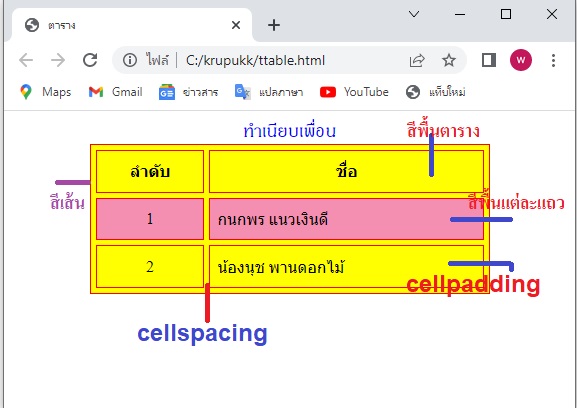 ตัวอย่างการกำหนดระยะห่าง และใส่สี