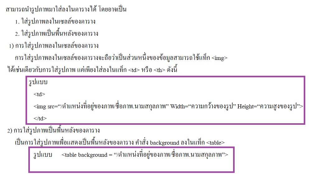 ตัวอย่างการใส่ภาพพื้นหลังและภาพในตาราง